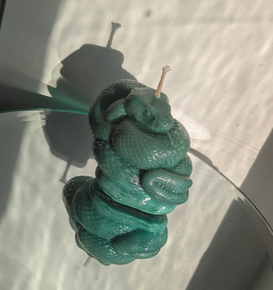 Small Coiled Teal Snake - Gloss Candle
