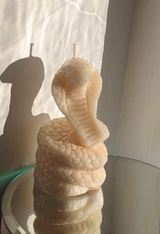 White Large Coiled Snake - Gloss Candle