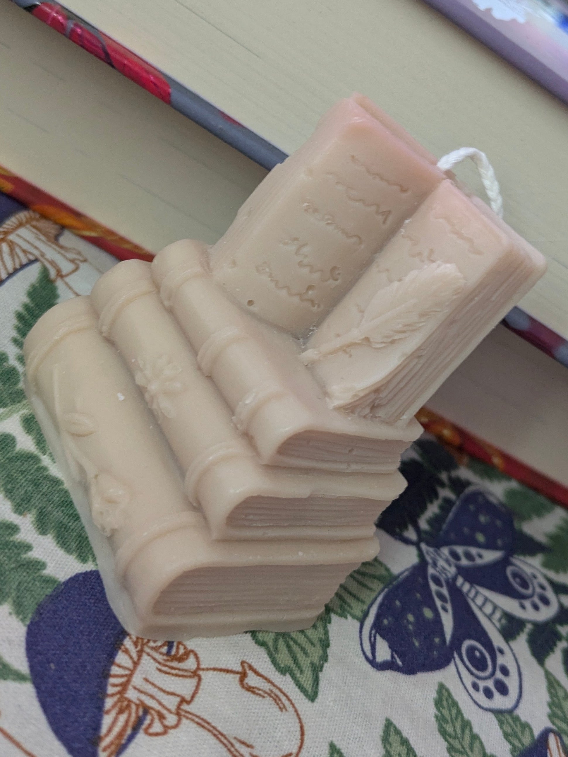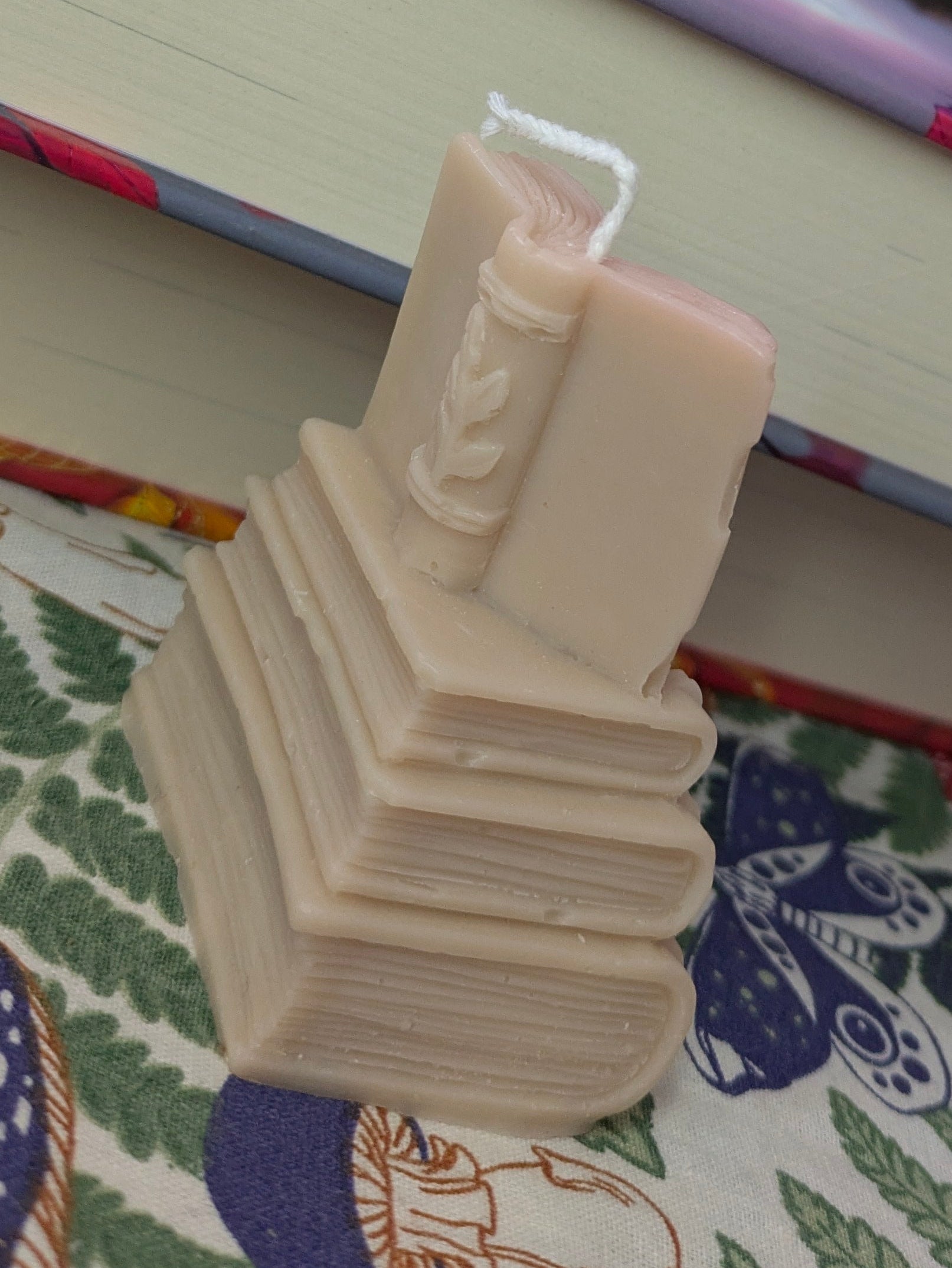 These bookstack candles are the perfect decorative touch for any reader's shelf display.