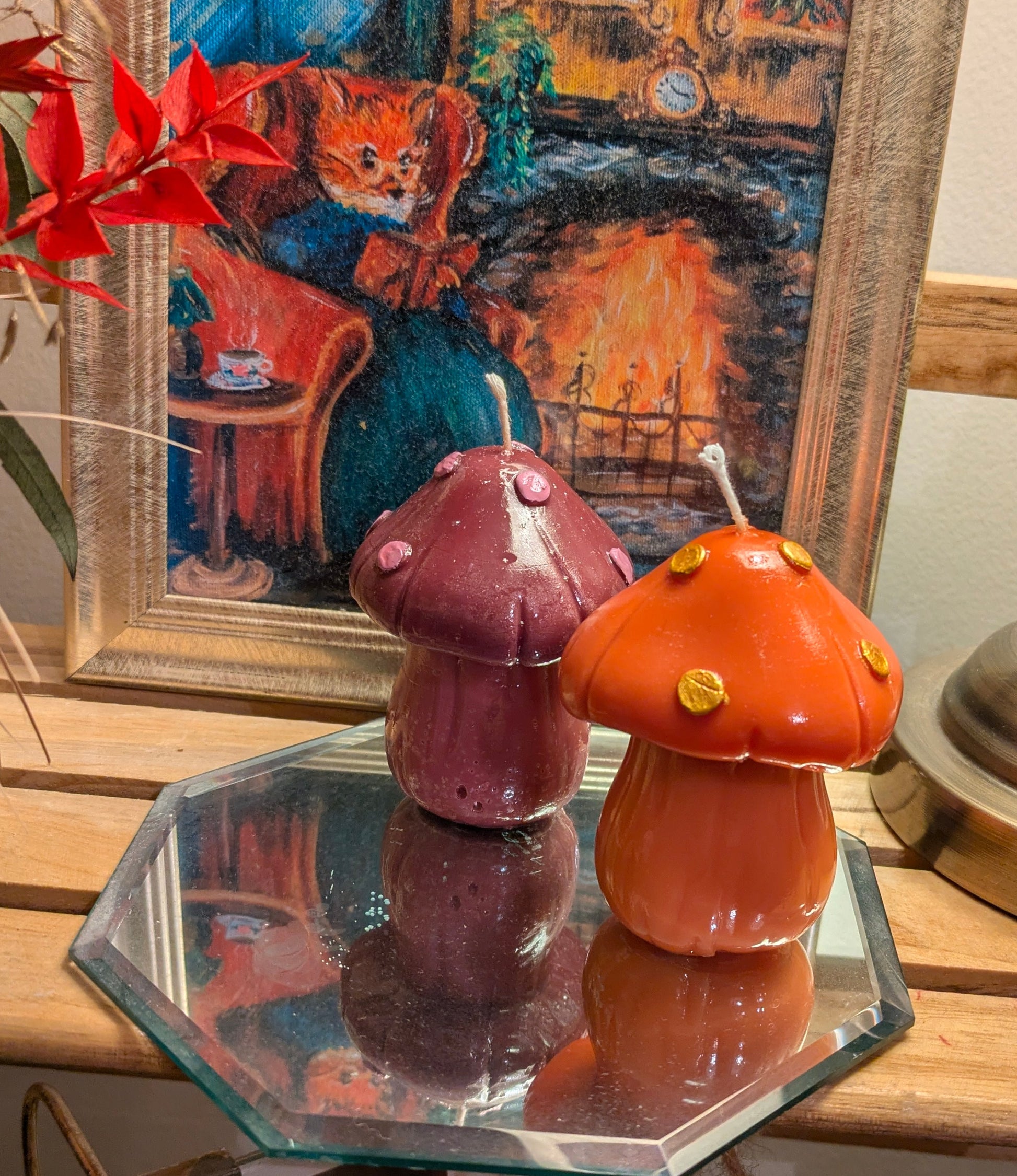 Want to add a touch of Whimsiness to your Christmas decor with our handcrafted & painted gloss finished Orange Mushroom Candle?