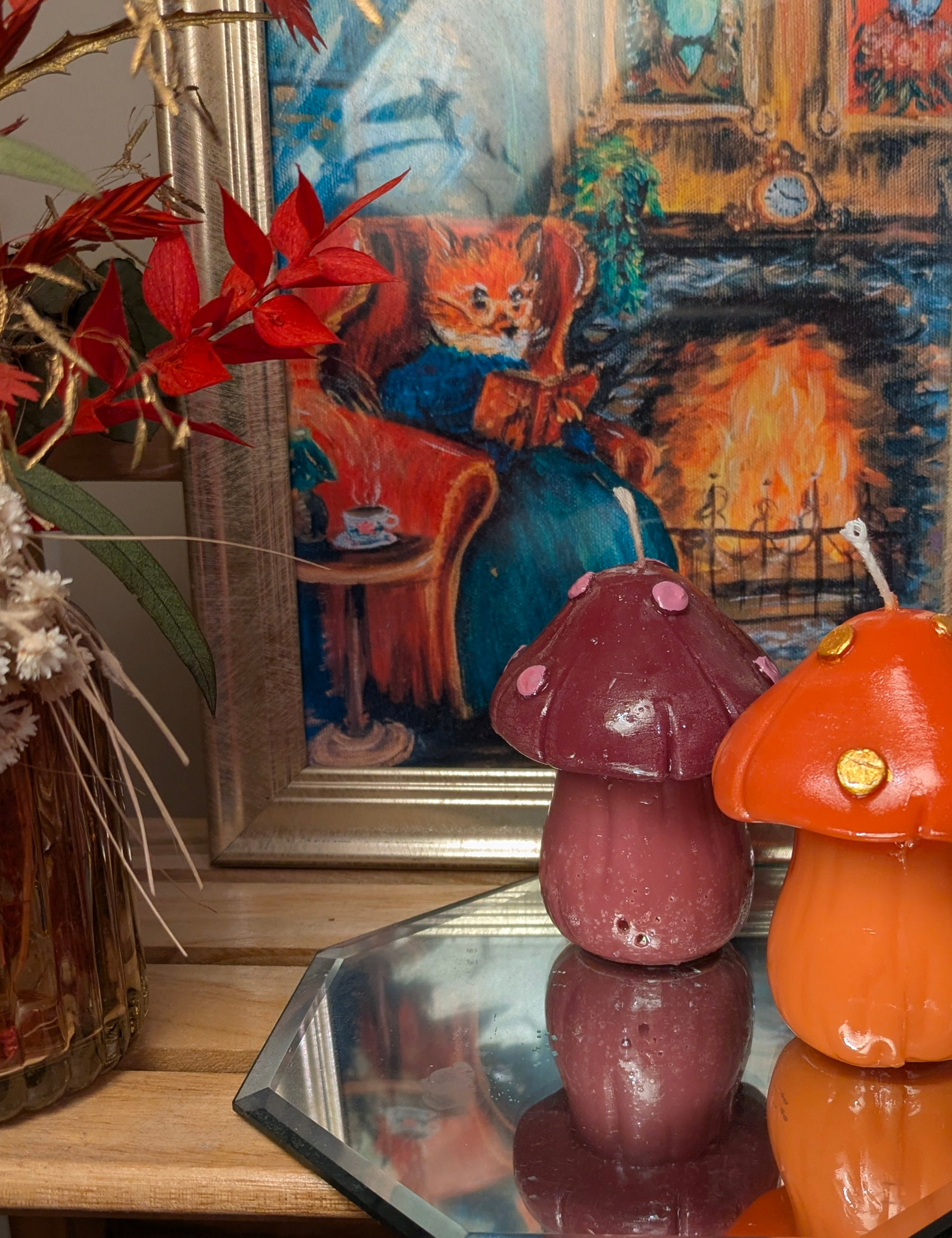 Want to add a touch of Whimsiness to your Christmas decor with our handcrafted & painted gloss finished Purple Mushroom Candle?